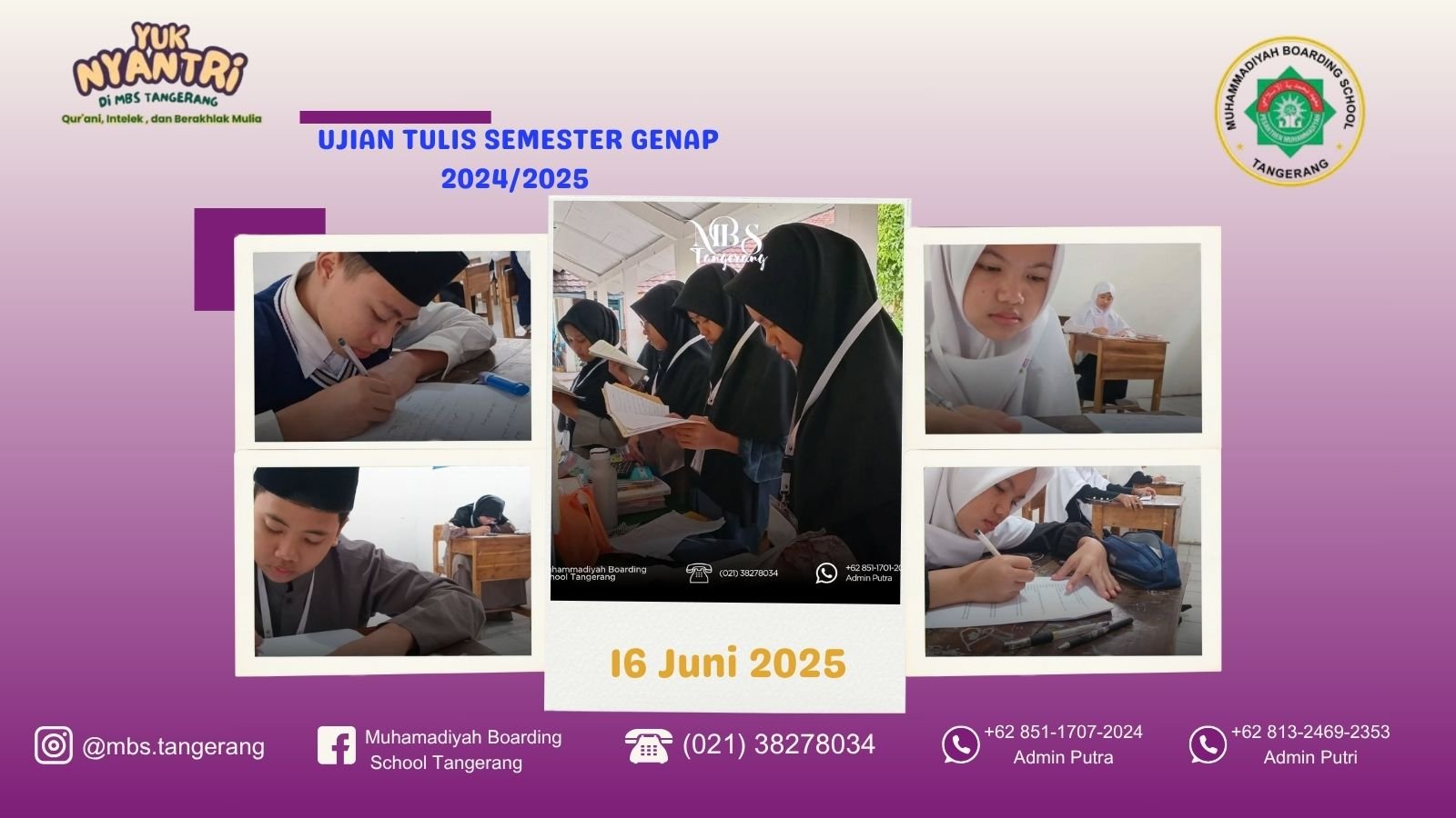 MBS Tangerang — Pada hari Senin, tanggal 16 Juni 2025, Muhammadiyah Boarding School (MBS) Tangerang mengadakan Ujian Tulis Semester Genap untuk seluruh santri .